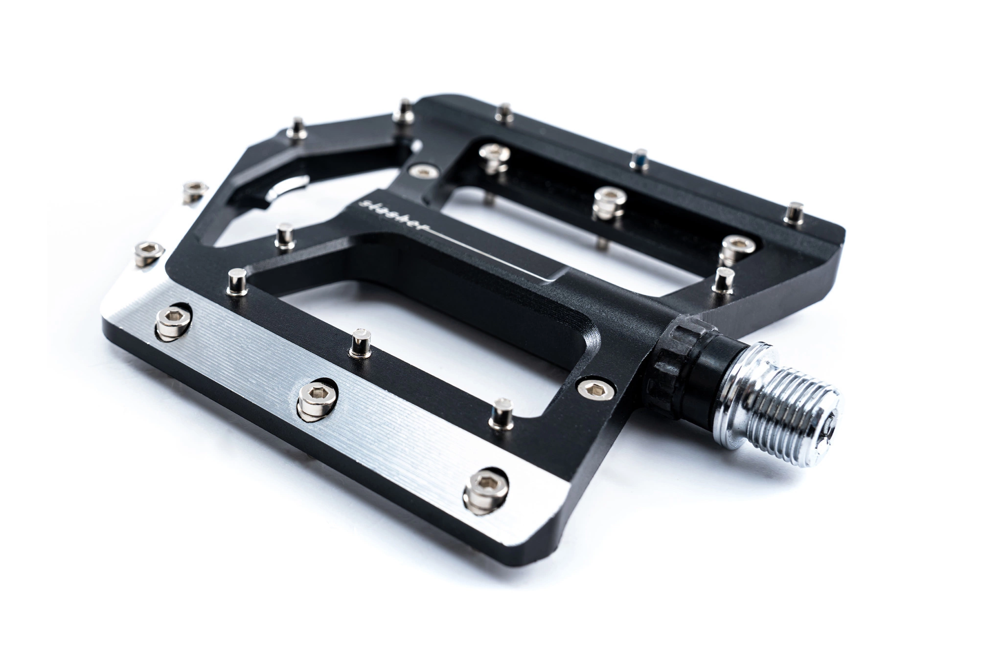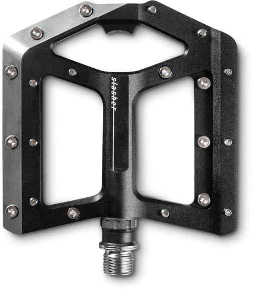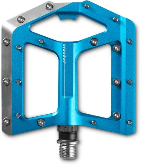 Puede contar con los pedales Slasher que con sus pasadores ajustables y su gran plataforma, te vas a sentir pegado a la bicicleta incluso en las secciones de raíz más retorcidas